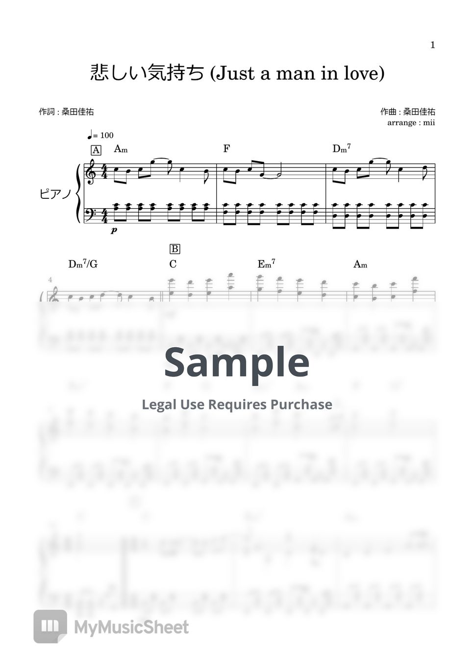 桑田佳祐 悲しい気持ち(Just a man in love) 악보 by miiの楽譜棚