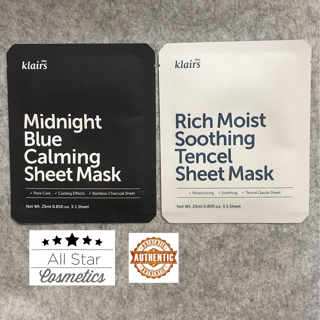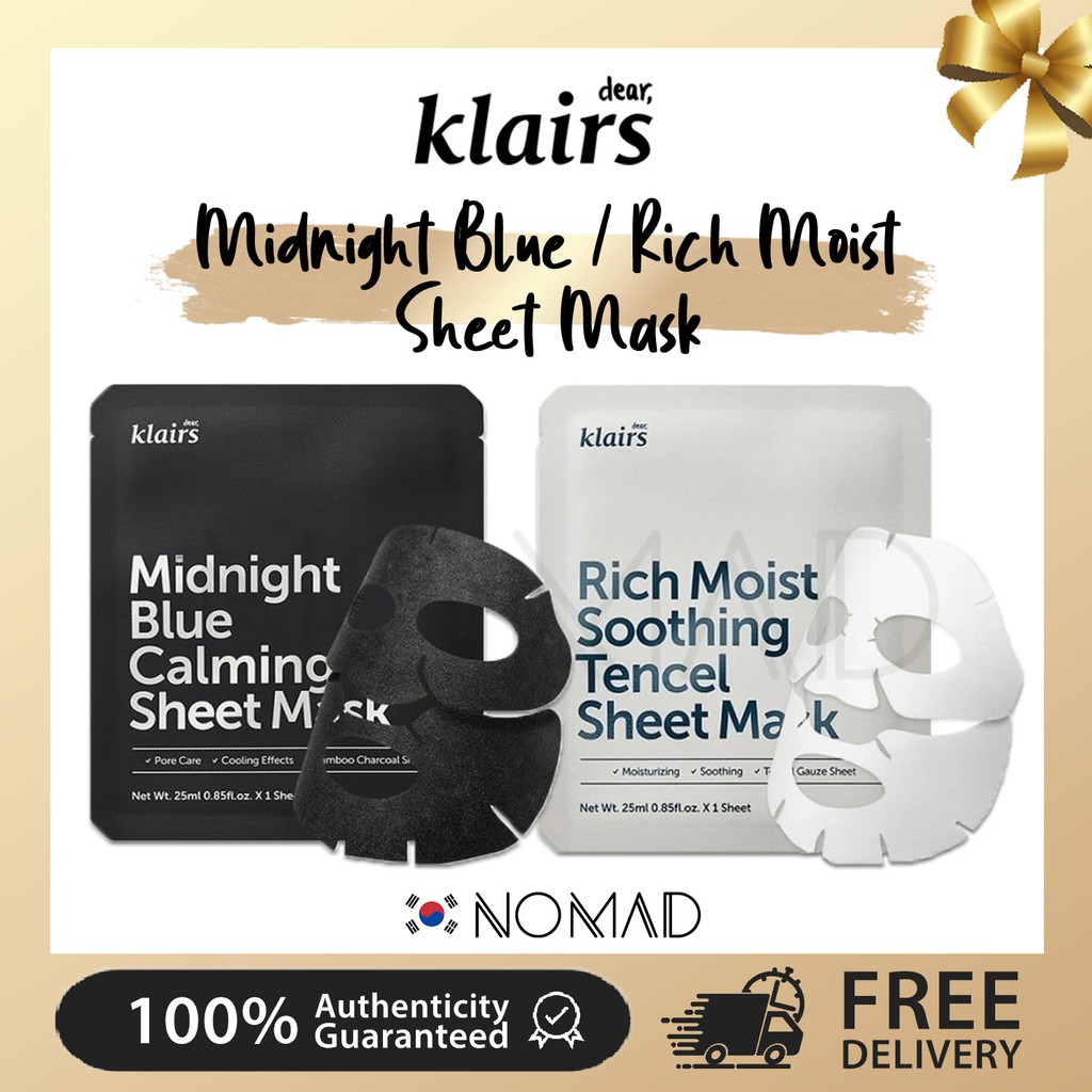 Combo 6 Dear, Klairs Midnight Blue Calming Sheet Mask 25ml+6 Rich Moist