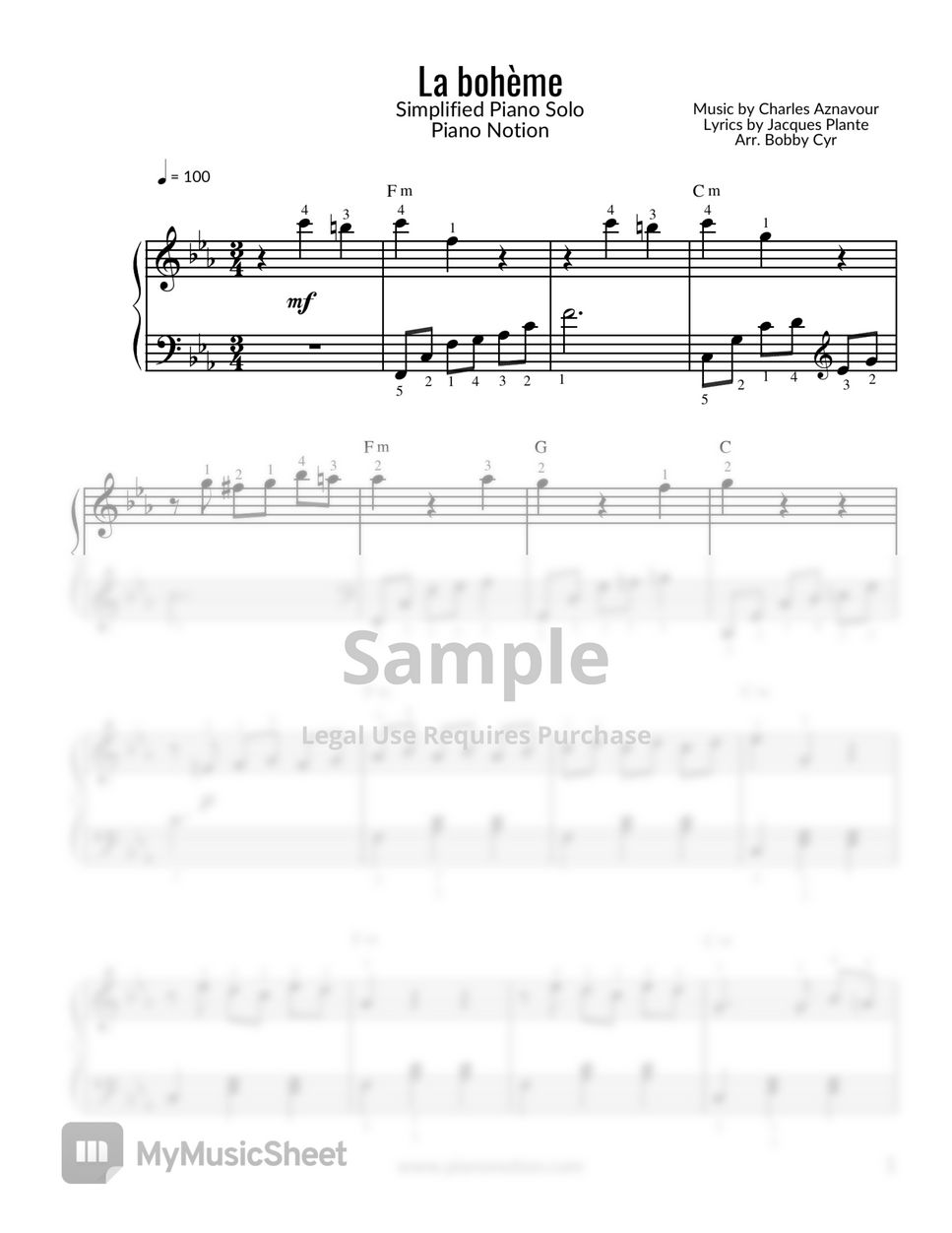 Share, download and print free sheet music of la boheme charles aznavour for piano, guitar, flute and more with the world's largest. Free sheet music for amateur musicians and learners! Sheet music cc is a site for those who wants to access popular sheet music easily,. Free and easy, high quality pdf on pianotify.