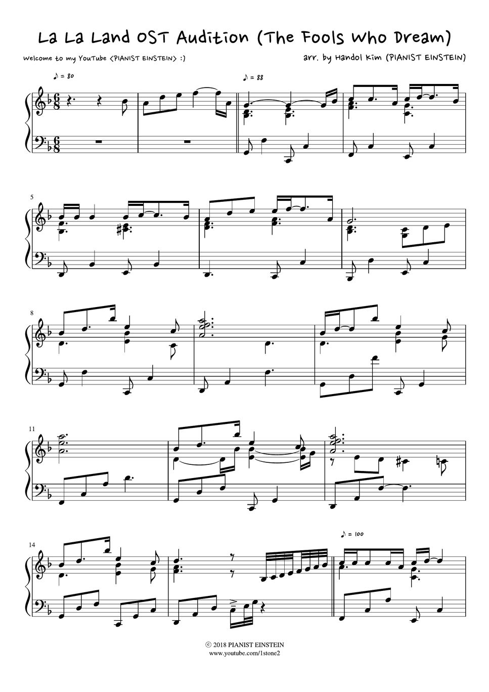 La La Land OST Audition (The Fools Who Dream) Sheet by PIANIST EINSTEIN