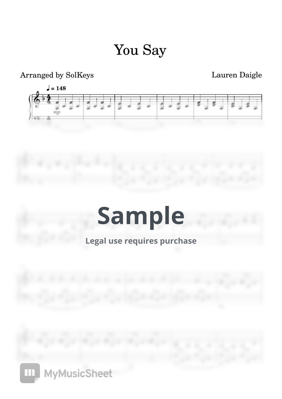 Lauren Daigle You Say Sheet Music by SolKeys