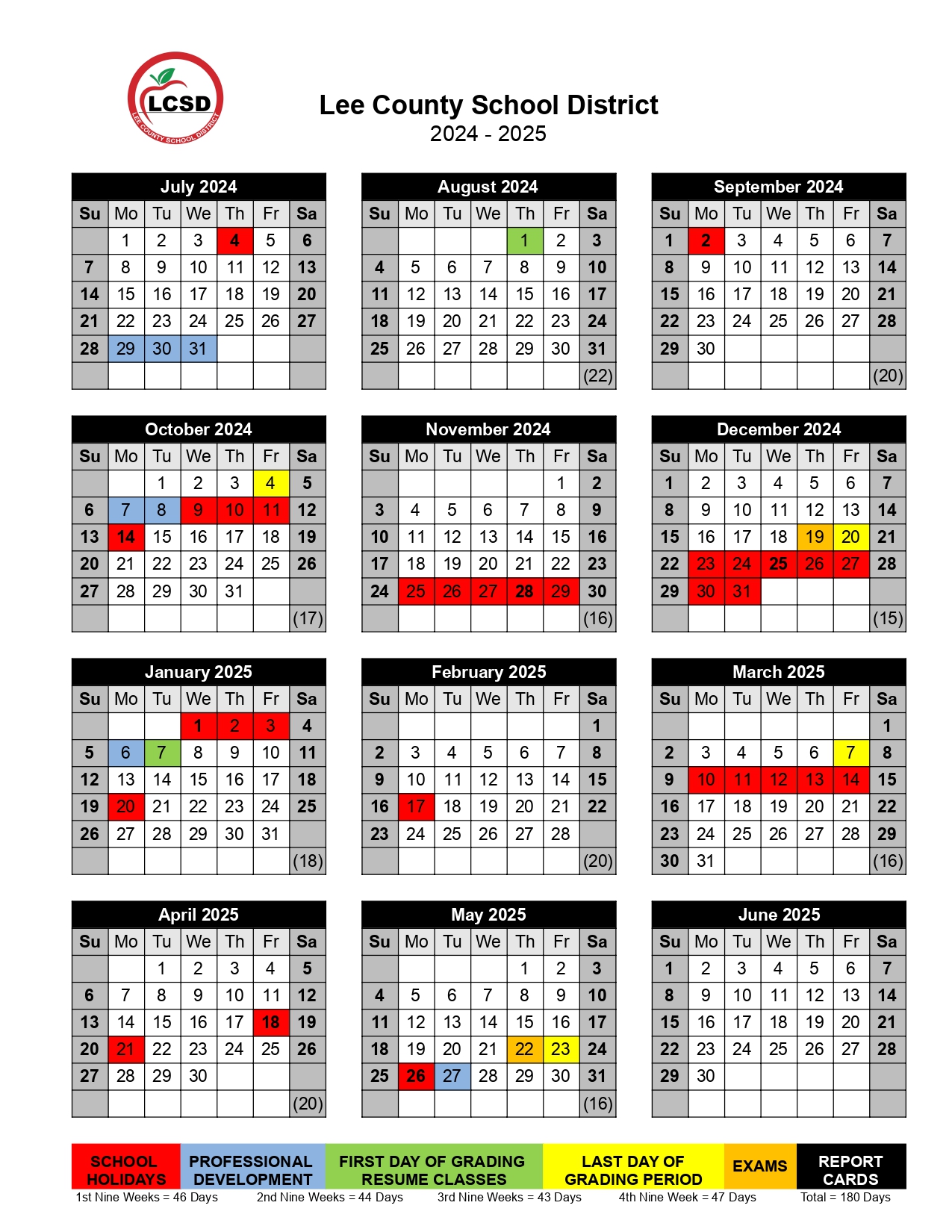 Lee County District Calendar