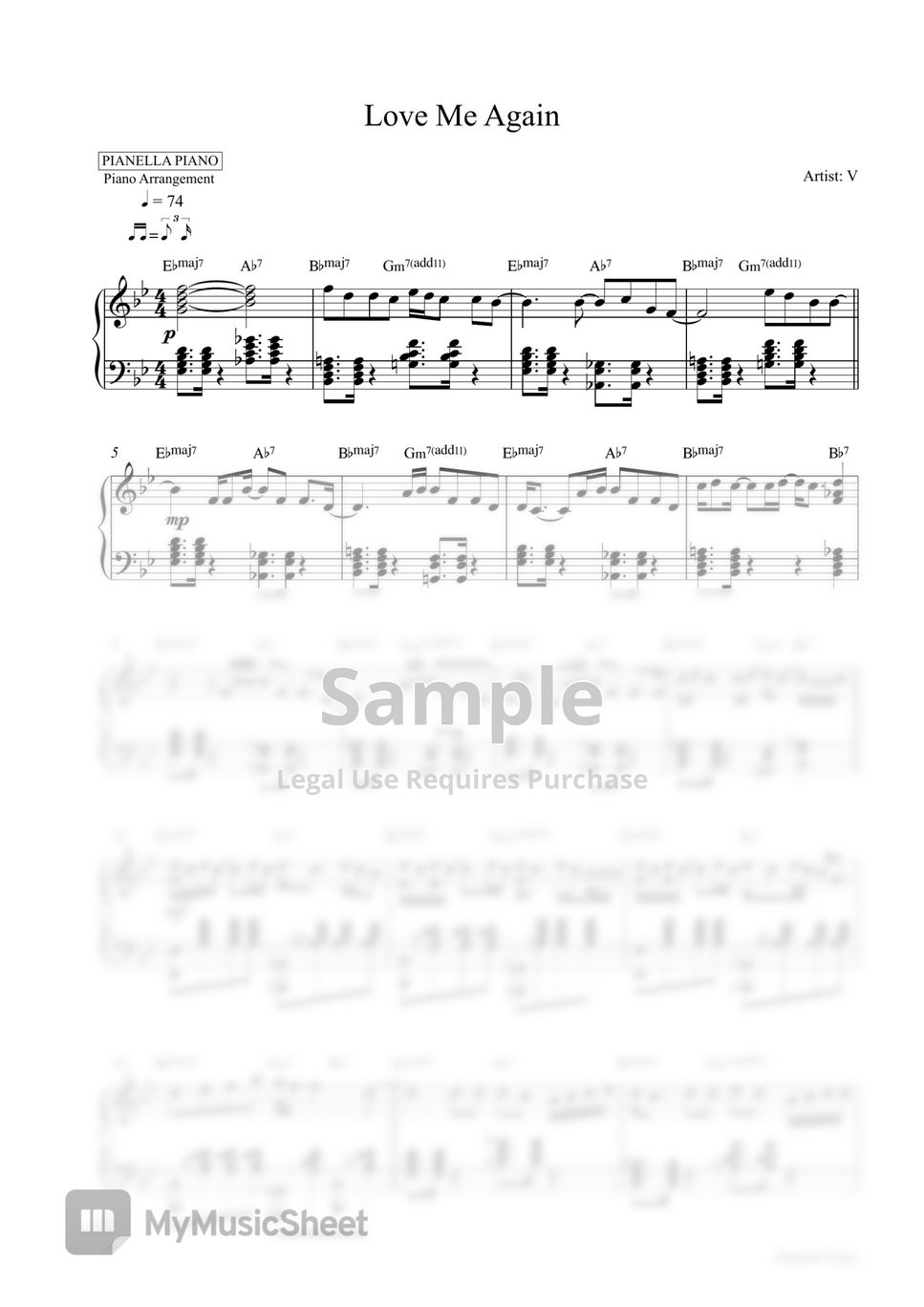 V Love Me Again (Piano Sheet) Sheet Music by Pianella Piano