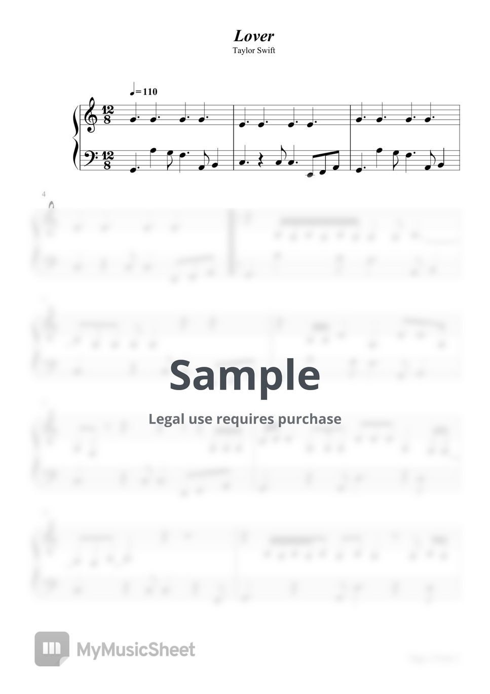 Lover Taylor Swift Piano Sheet Music