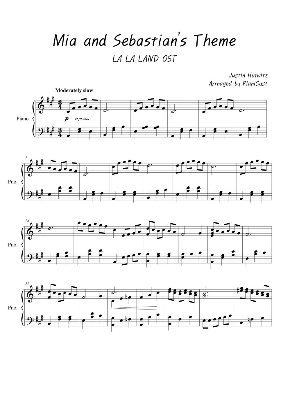 Share, Download And Print Free Sheet Music Of Mia & Sebastian's Theme Justin Hurwitz For Piano, Guitar, Flute And More With The World's Largest.