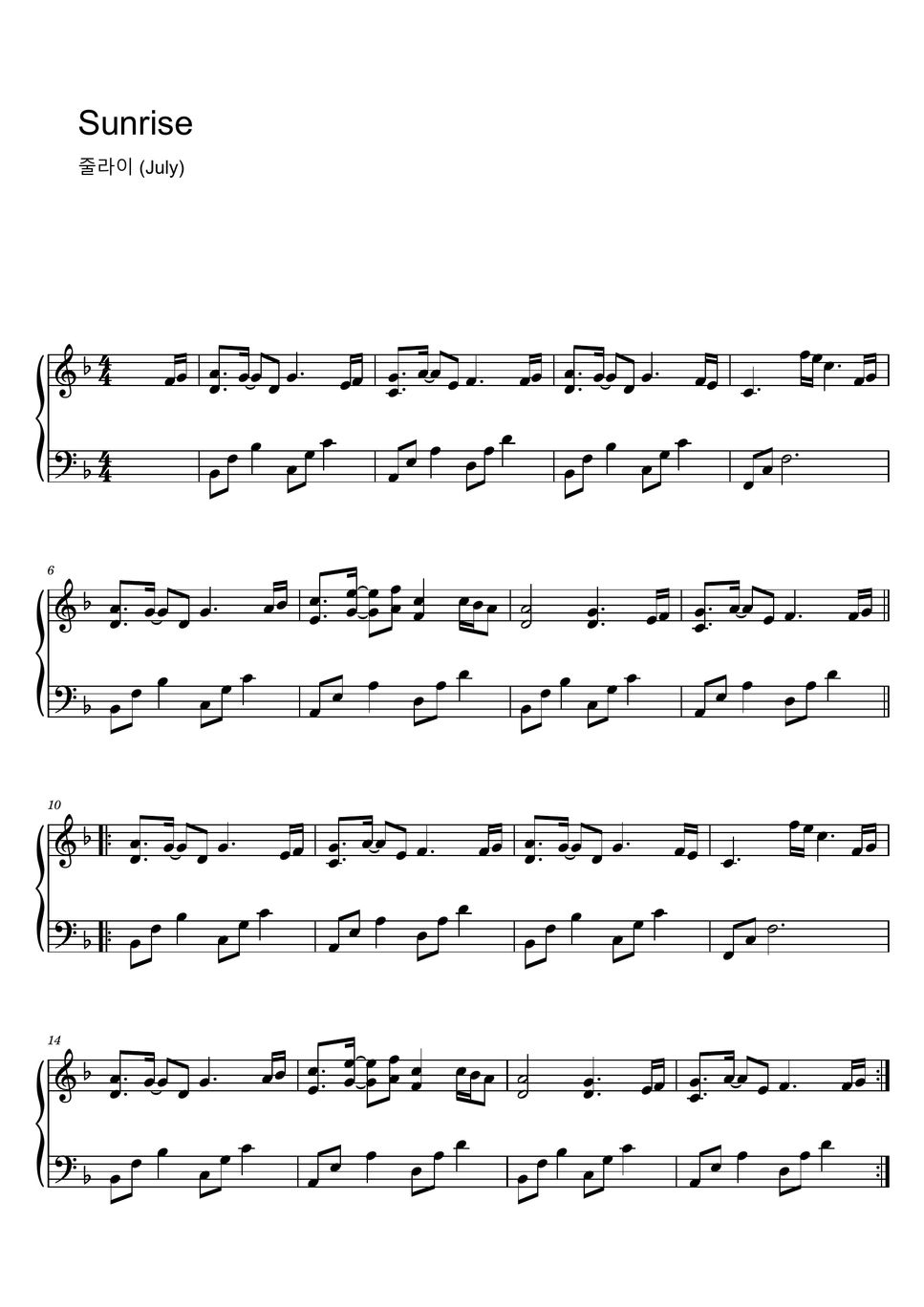 줄라이 (July) Sunrise (Sheet Music, MIDI,) Sheets by Roxette