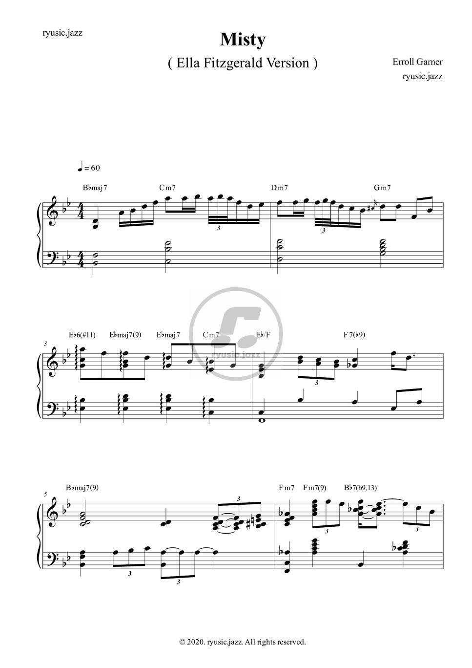 Erroll Garner Misty (Ella Fitzgerald Ver.) Sheet by ryusic.jazz