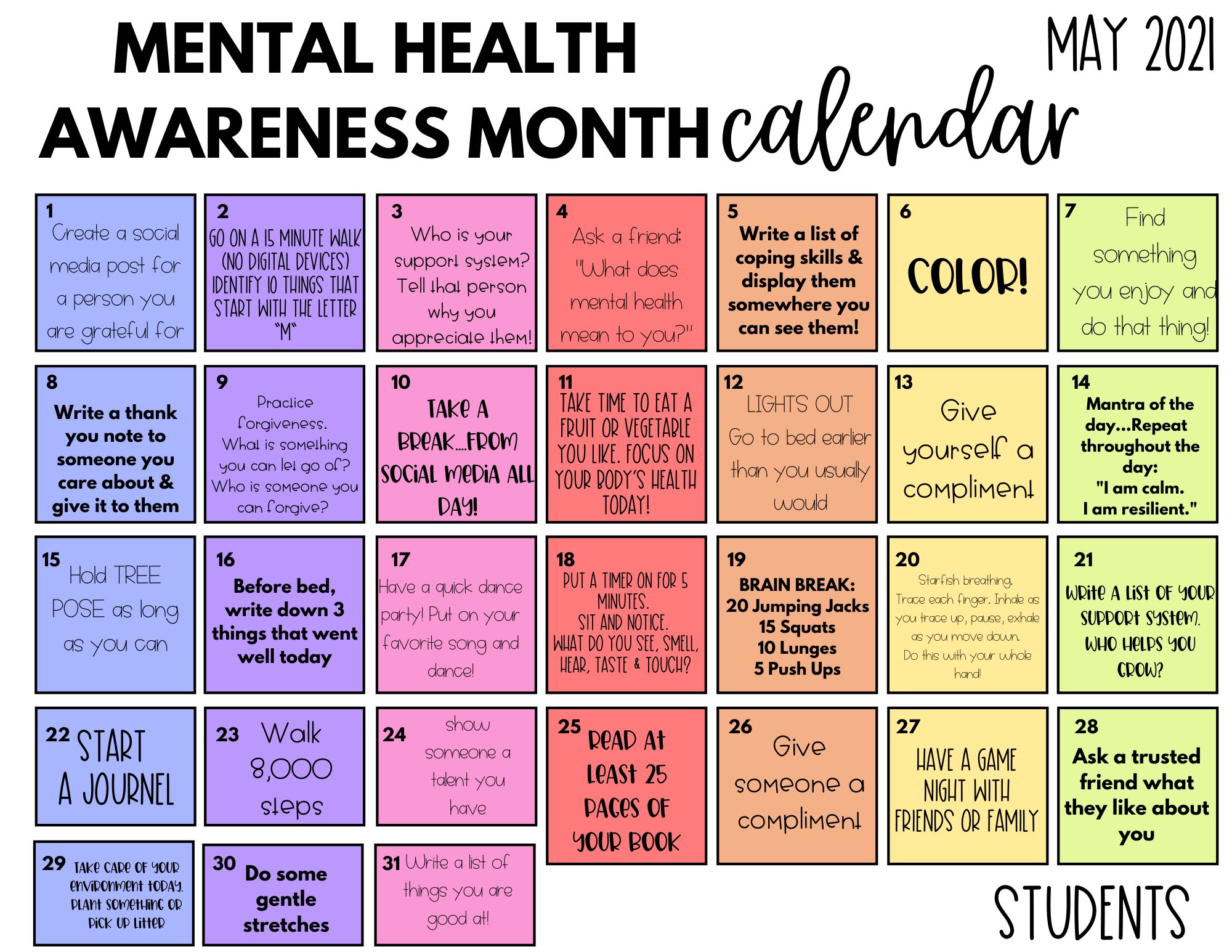 “Mental Health Matters” May Calendar — Alliance for Prevention and Wellness
