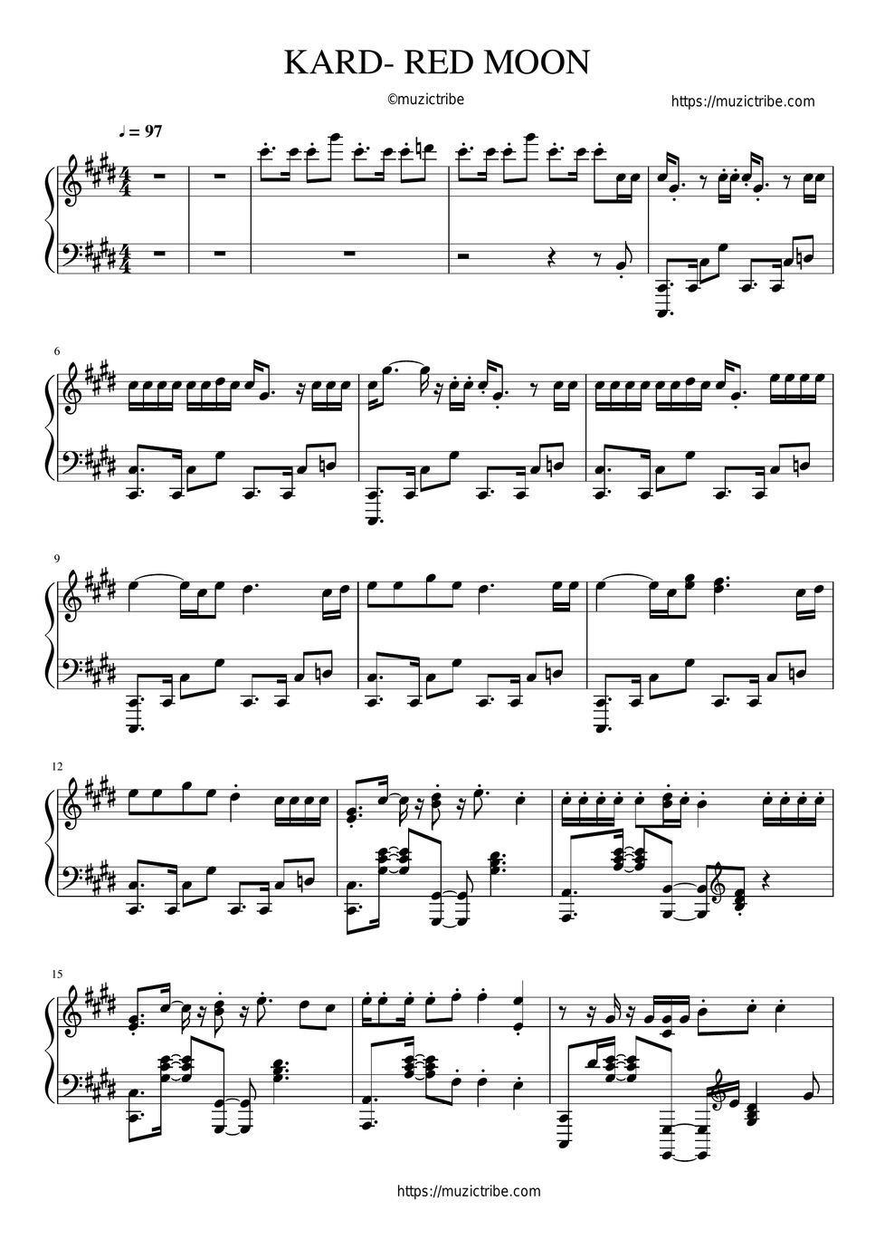 KARD(카드) RED MOON Piano Sheet + MP3 + MIDI Sheets