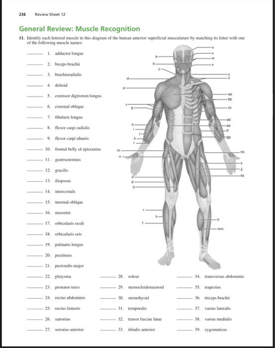 Review sheet 12 149 identify each of the lettered muscles in this diagram of the human posterior superficial musculature by matching the letter. 146 review sheet 12 general review: Study with quizlet and memorize flashcards containing terms like connective tissue covering a bundle of muscle fibers, bundle of muscle. Study with quizlet and memorize flashcards containing terms like a, b, c and more. An aponeurosis is a sheet of white fibrous connective tissue; A tendon is a band or cord of the same tissue.