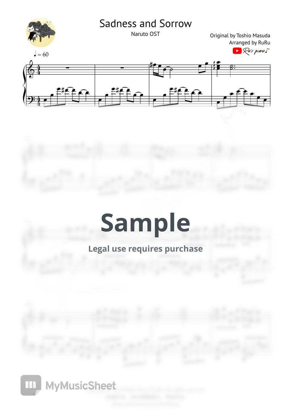 Naruto OST Sadness and Sorrow (2024 ver.) Sheets by Ru's Piano