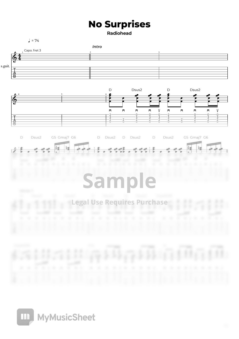 Radiohead No Surprises Sheets by Nikola Gugoski