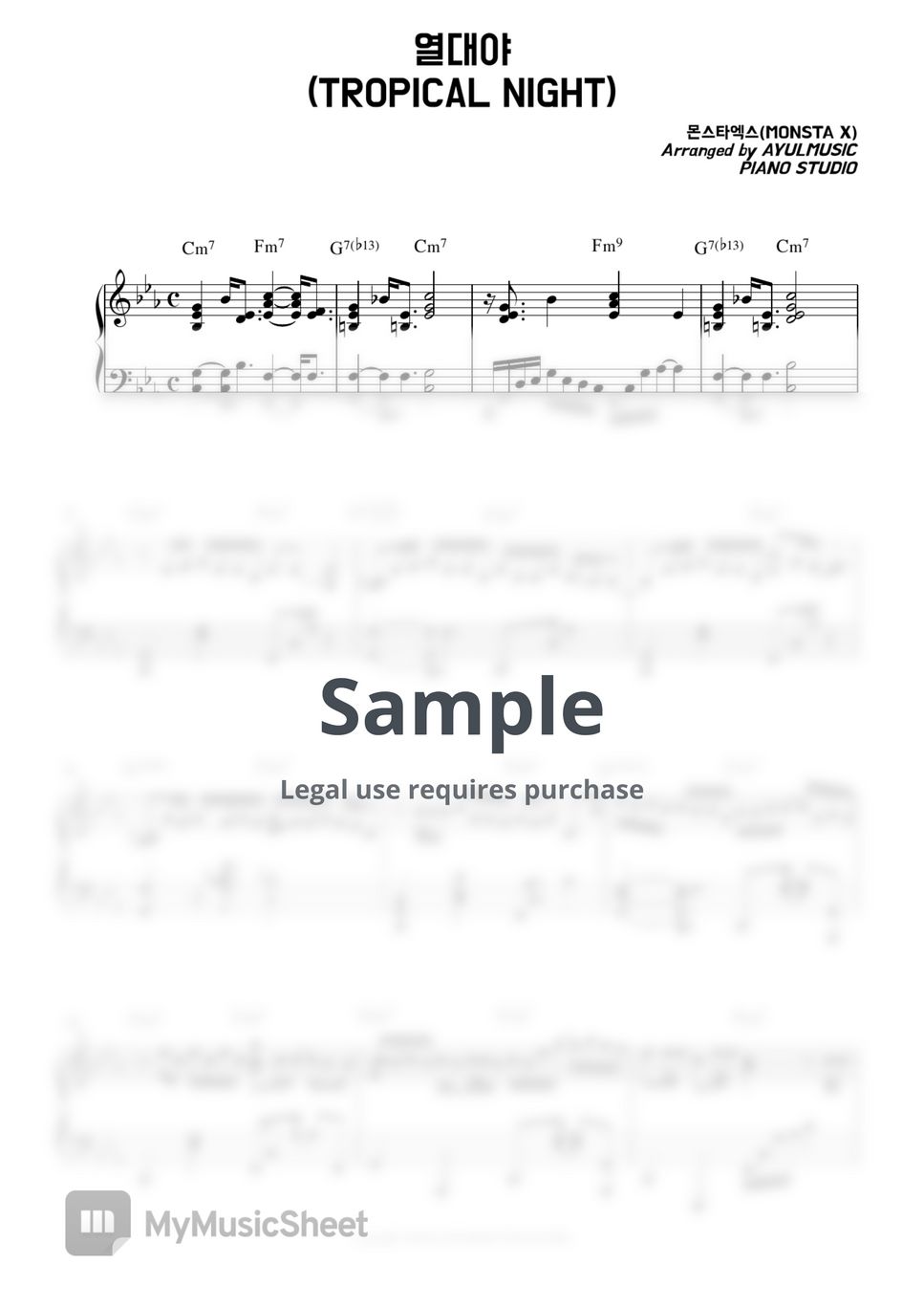몬스타엑스 열대야 (1절/ 코드 포함) Sheet Music by AYULMUSIC PIANO STUDIO