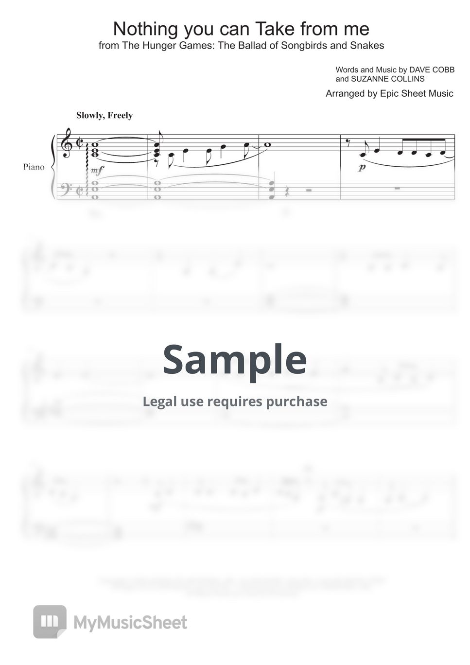 The ballad of songbirds & snakes) sheet music for piano,. Download and print nothing you can take from me (from the hunger games: Share, download and print free sheet music of nothing you can take from me rachel zegler for piano, guitar, flute and more with the world's. Here's the sheet music for nothing you can take from me by.