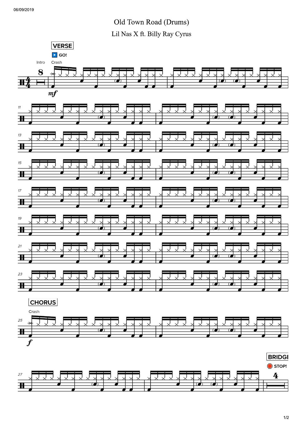 Lil Nas X ft. Billy Ray Cyrus Old Town Road Sheets by Magic Drum Sheets