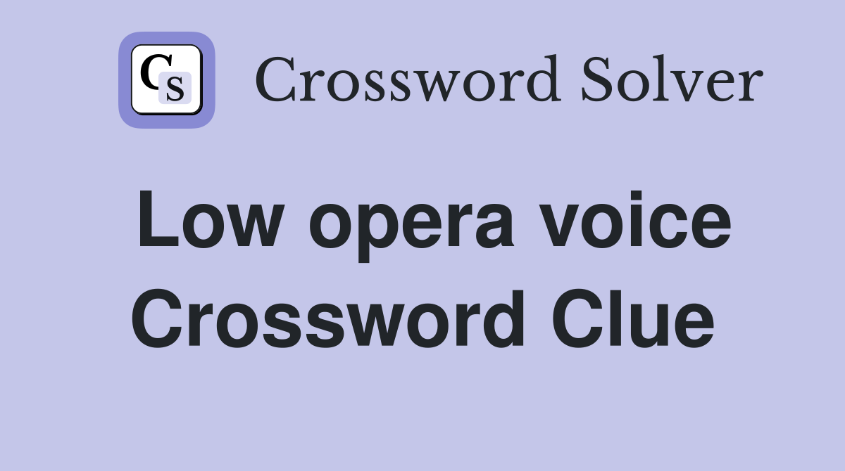 Now, let's get into the answer for opera singer with a low voice crossword clue. On this page you will find the opera singer with a low voice crossword clue answers. Here is the answer for the crossword clue opera singer with a low voice last seen in universal. The crossword solver found 30 answers to opera singer with a low voice, 5 letters crossword.