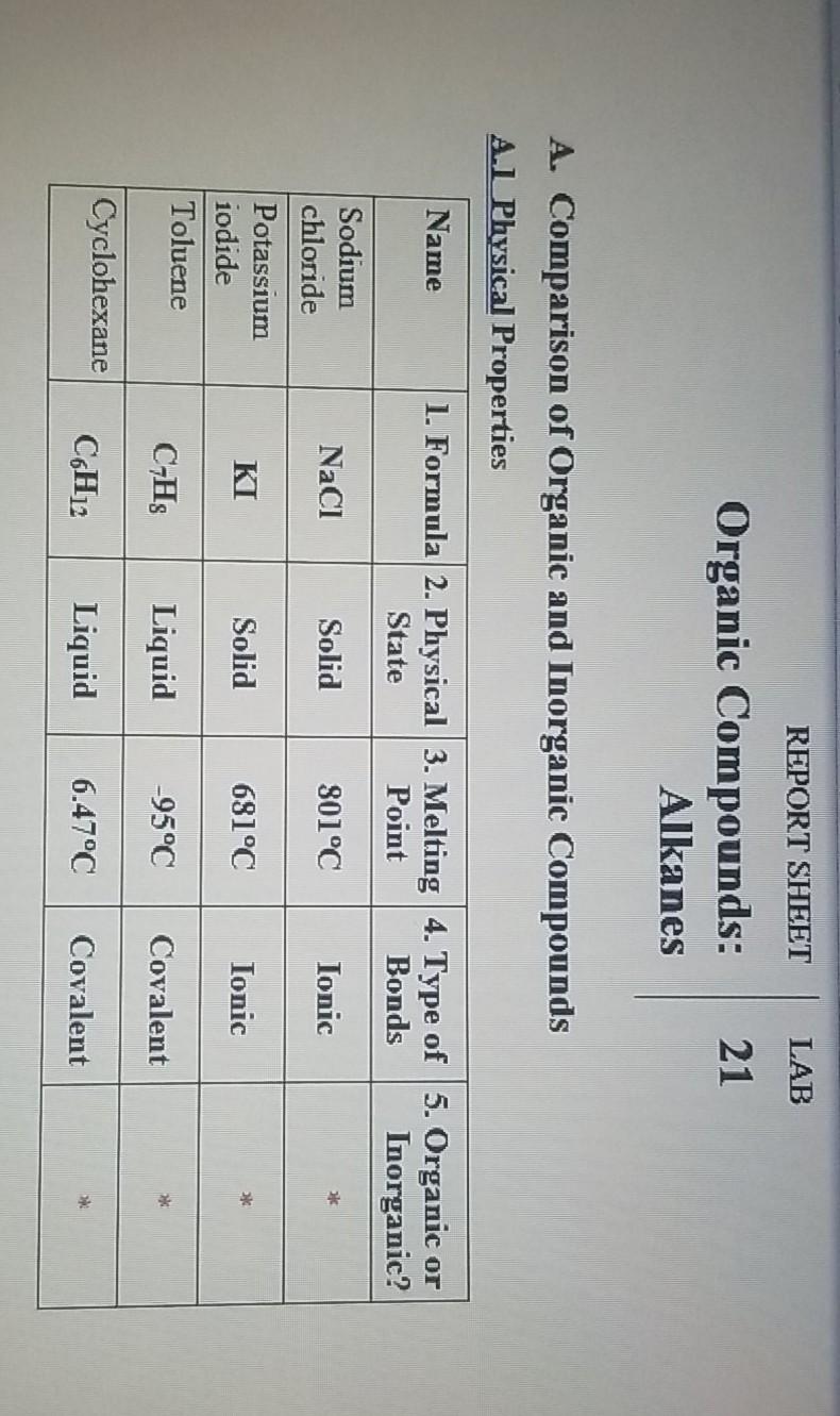Solved REPORT SHEET LAB 21 Organic Compounds Alkanes A.