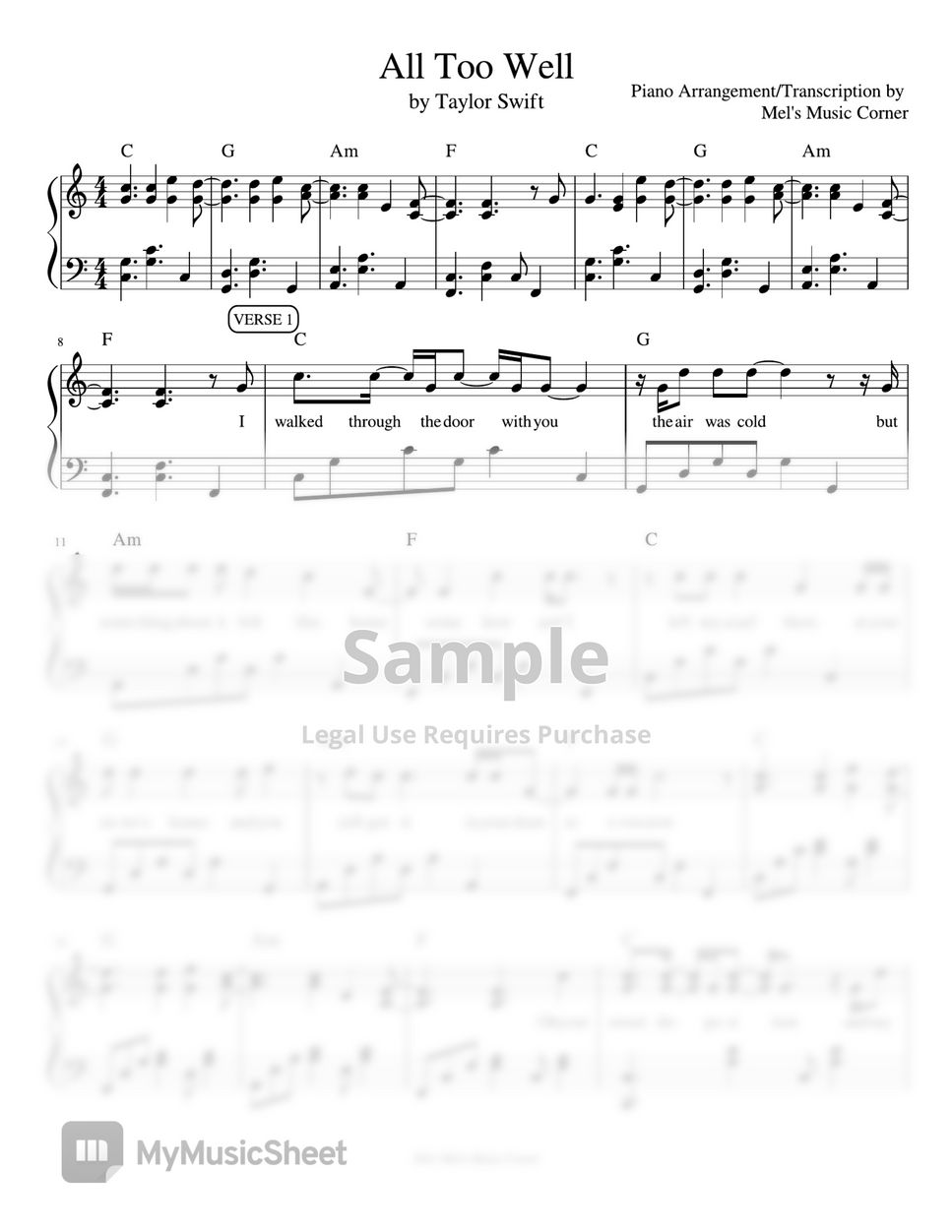 Taylor Swift All Too Well (piano sheet music) แผ่น by Mel's Music Corner