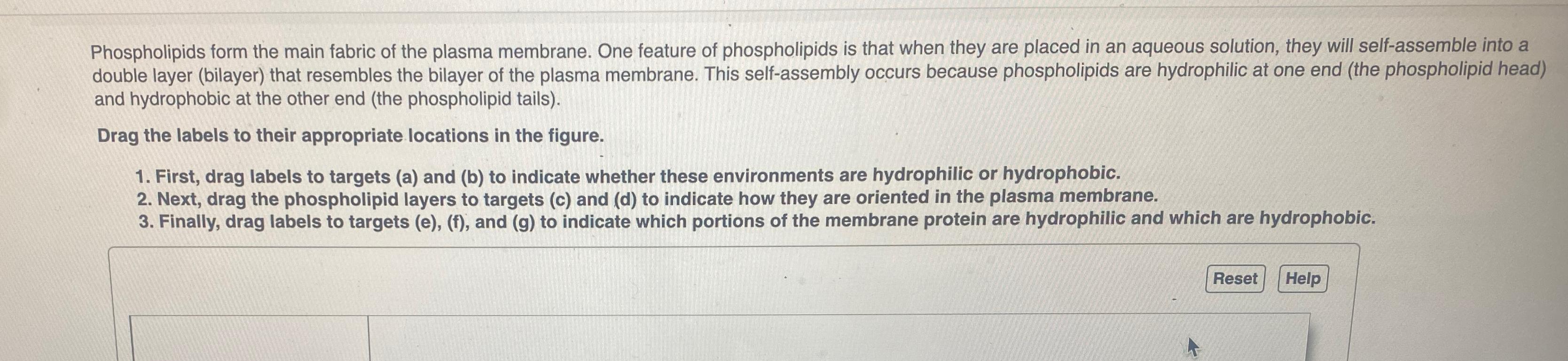 Phospholipids, arranged in a bilayer, make up the basic fabric of the plasma membrane. One feature of phospholipids is that. Phospholipids form the main fabric of the plasma membrane.