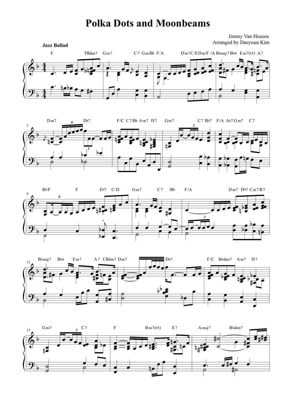 Jimmy Van Heusen Polka Dots and Moonbeams Sheet by Daeyoun Kim