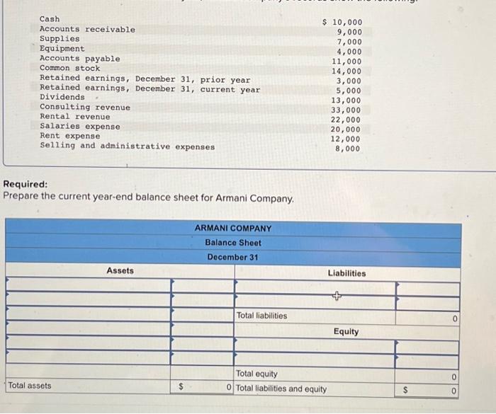 Prepare The Current Year-End Balance Sheet For Armani Company. - As of december 31 of the current year, armani company’s records show the following.