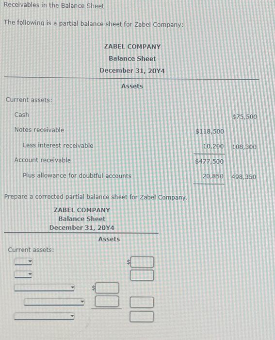 Solved Receivables in the Balance Sheet The following