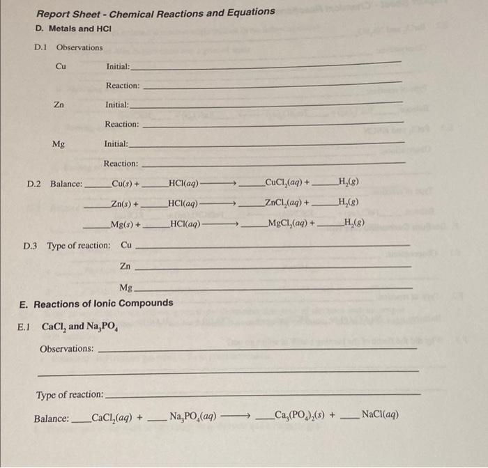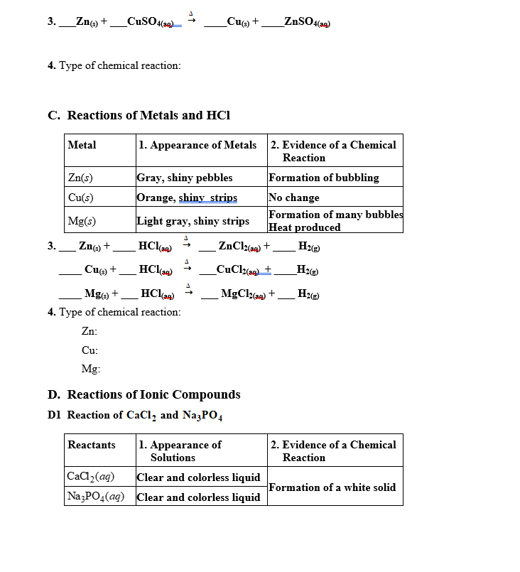 Report Sheet Lab 10 Chemical Reactions And Equations Tessshebaylo