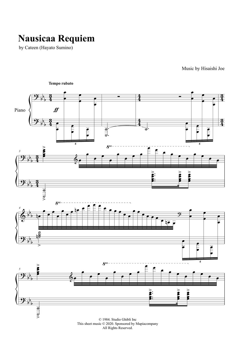 Joe Hisaishi Nausicaa Requiem Sheets by Hayato Sumino (Cateen)