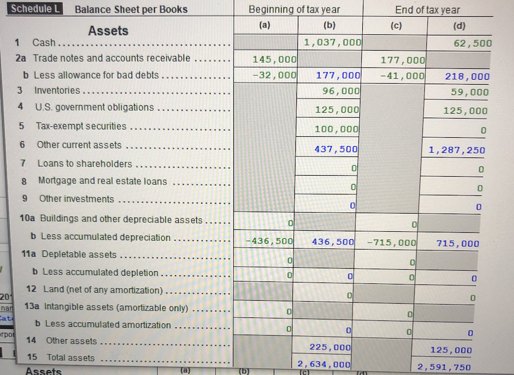 Solved Schedule L Balance Sheet per Books Assets 1 Cash.. 2a