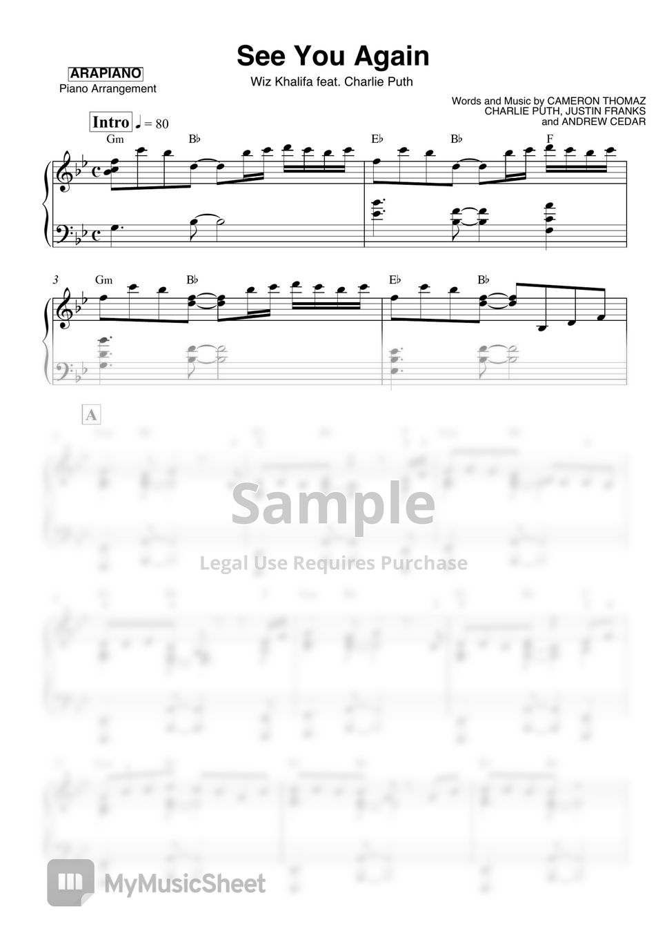 Wiz Khalifa ft. Charlie Puth See You Again Sheets by ARAPIANO