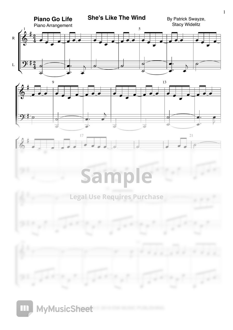 Patrick Swayze She's Like The Wind Sheets by Piano Go Life