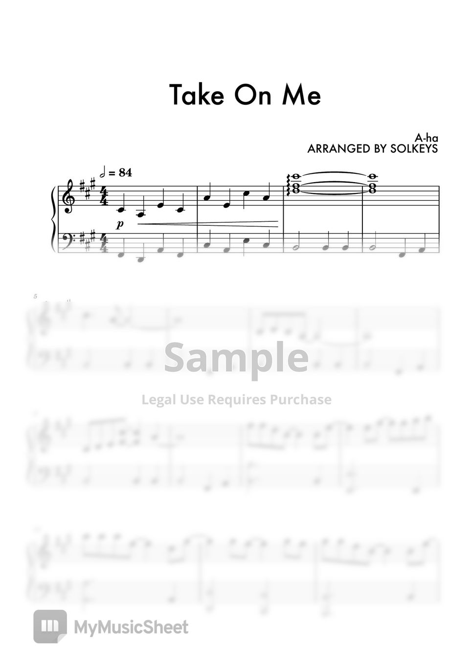 AHa Take On Me Sheets by SolKeys
