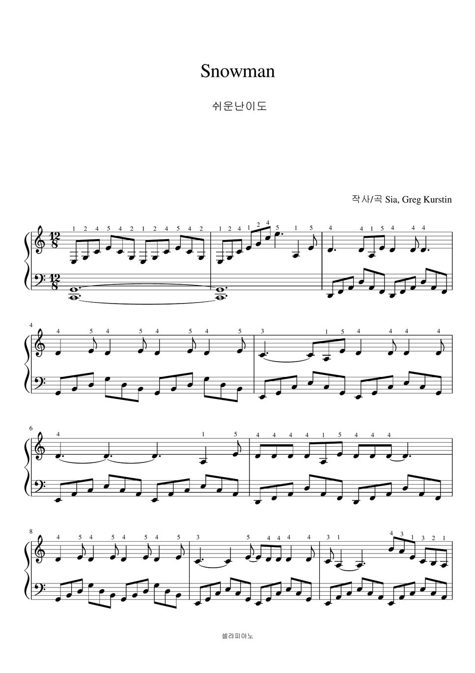 악보 > Sia Snowman (다장조 쉬운 악보) by 펭귄피아노