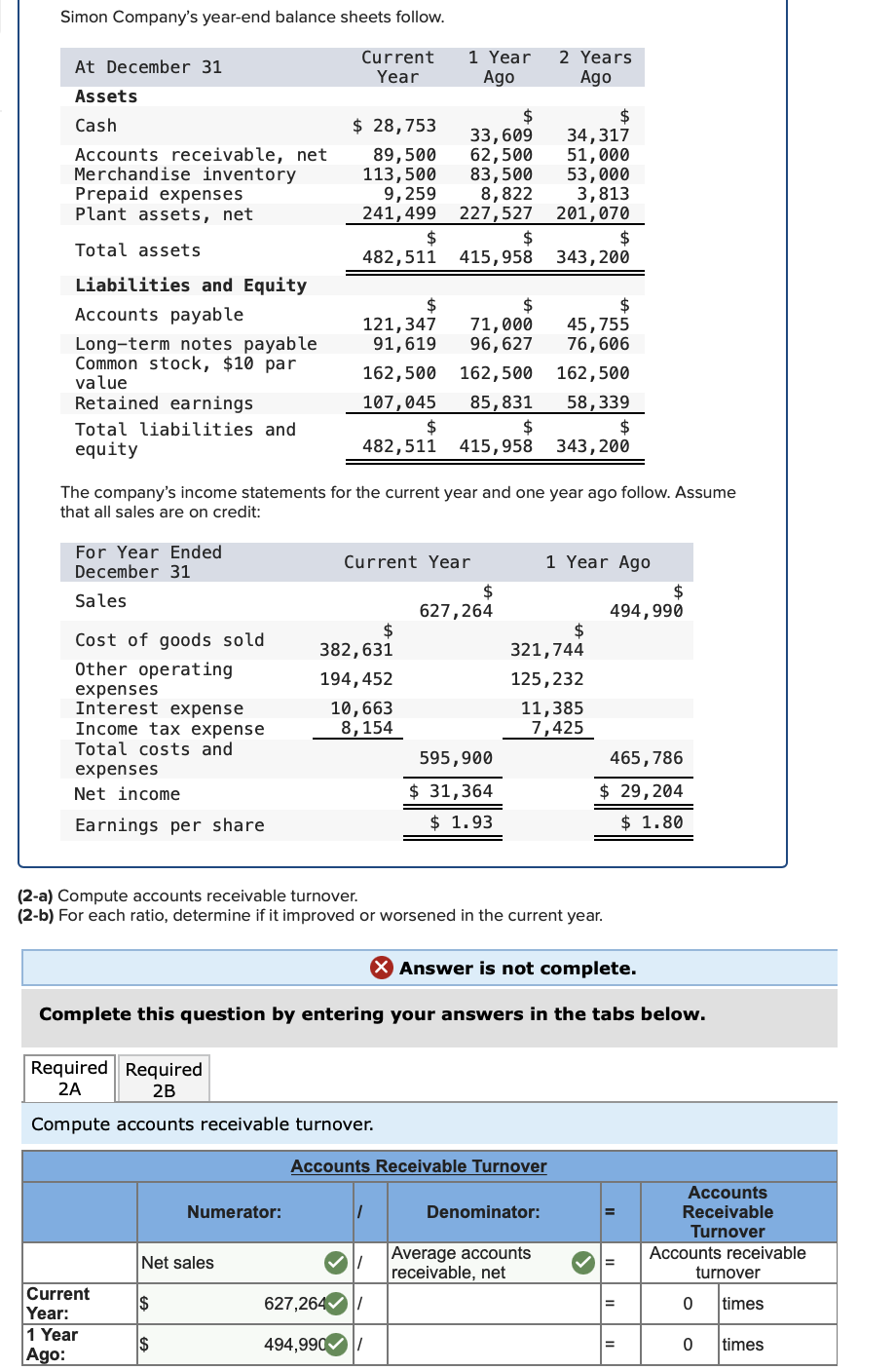 Simon Company's Year End Balance Sheets Follow - To compute the days' sales uncollected for the current year, identify and retrieve the values for accounts receivable and net sales for the. For both the current year and 1 year ago, compute the following ratios: Return on common stockholders' equity. To understand the calculations, use the cell references given in the formula sheet.