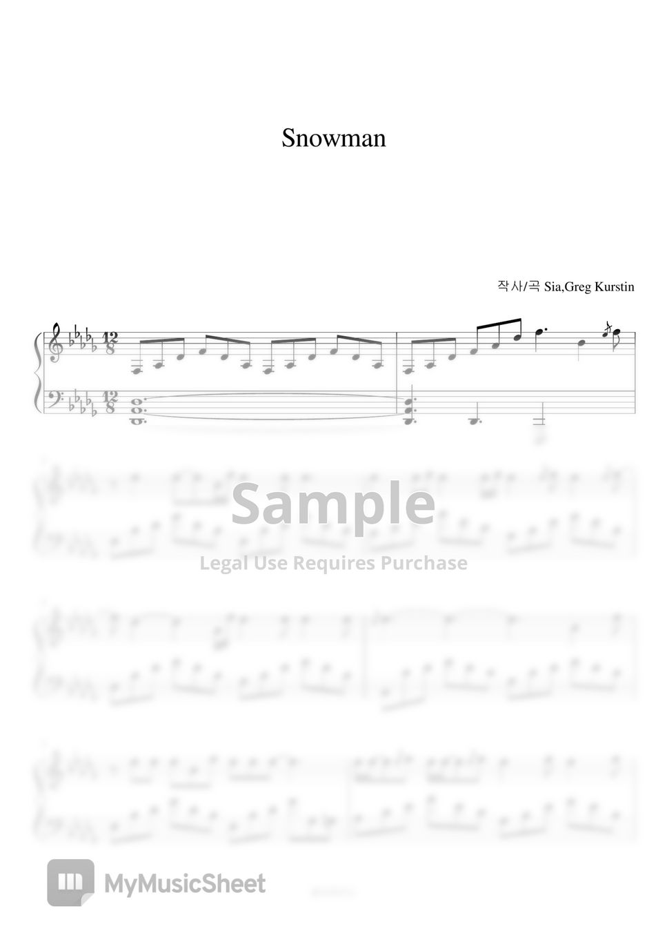 Sia Snowman (difficulty) Sheets by SELAH PIANO