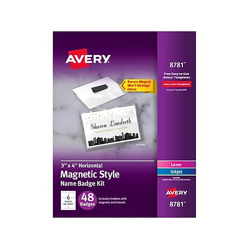 Avery Name Badge Kit, White, 48/Box (8781) Staples