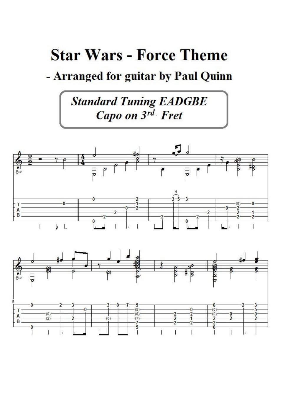 Star Wars Force Theme (Acoustic Guitar) TAB