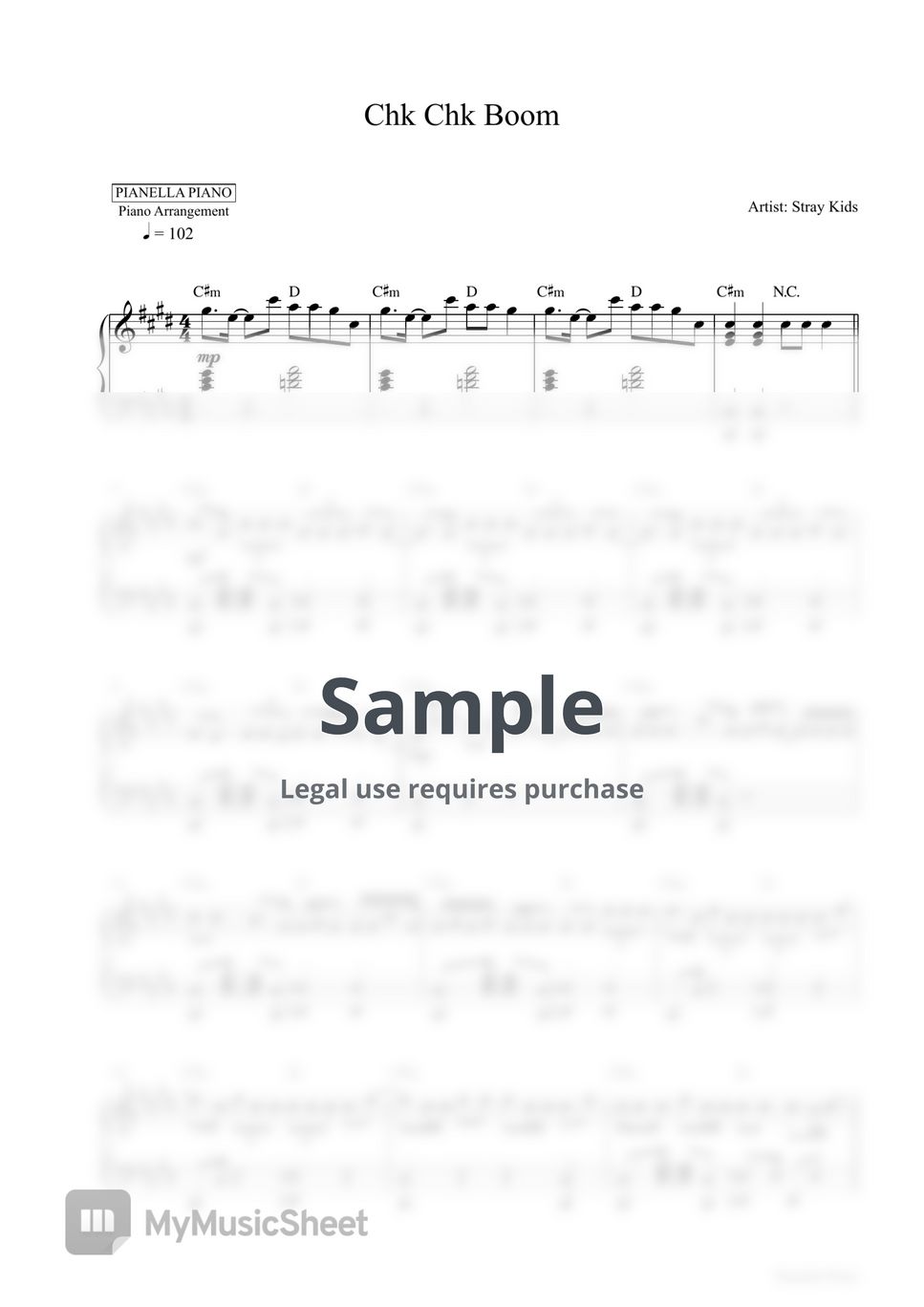 Stray Kids Chk Chk Boom (Piano Sheet) Sheet Music by Pianella Piano