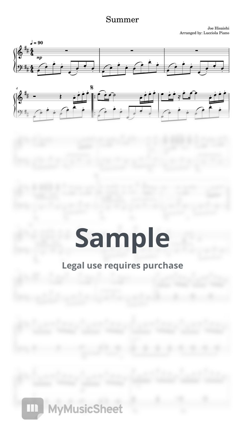 Joe Hisaishi Summer Sheets by Lucciola Piano