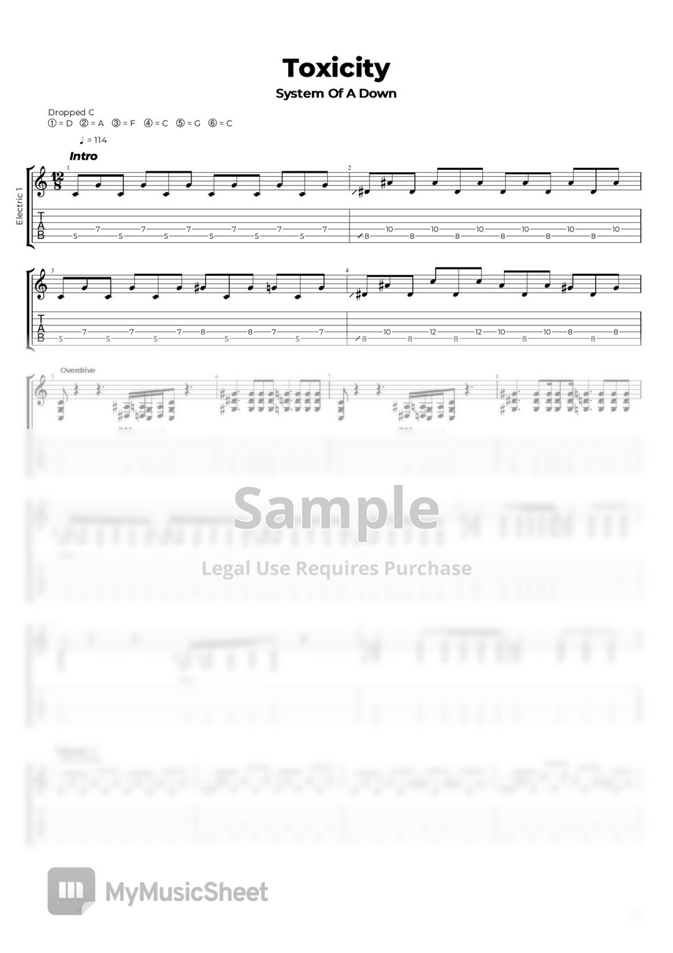 System Of A Down "Toxicity" Sheet Music Notes Download Printable PDF