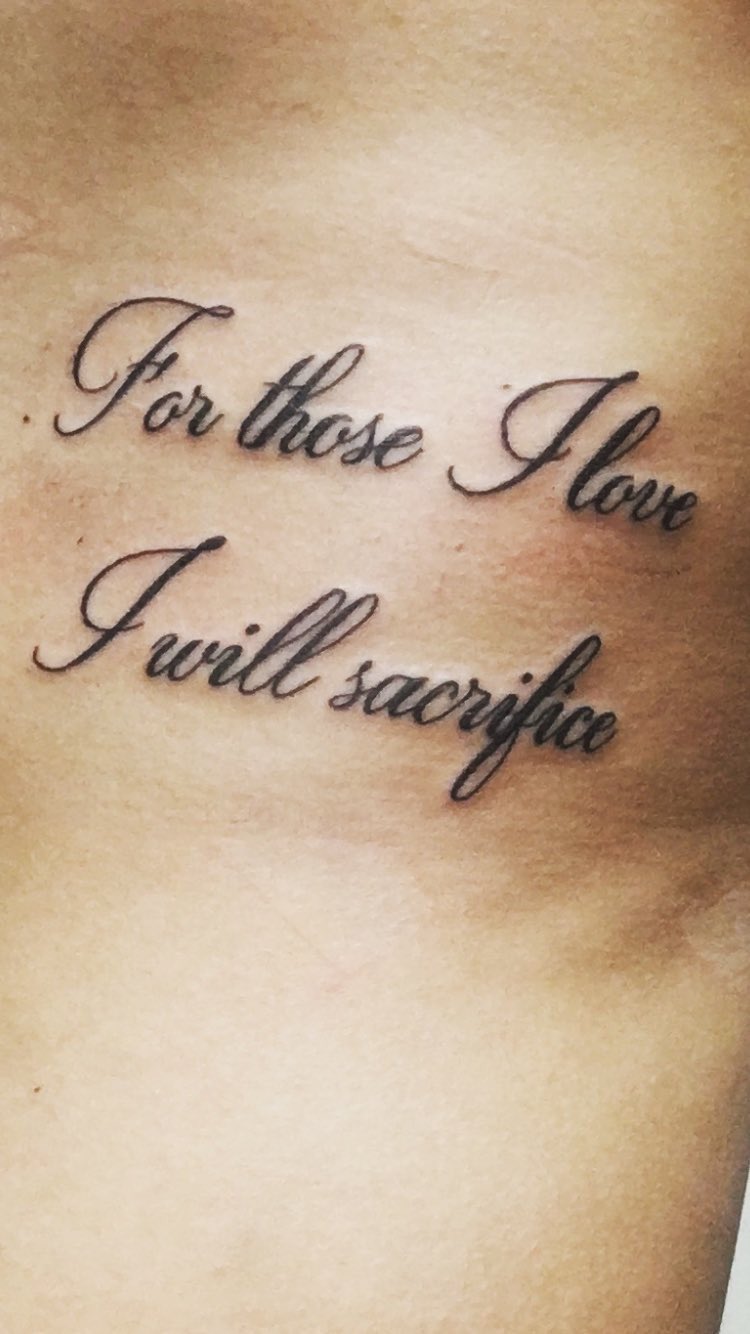 Tattoo For Those I Love I Will Sacrifice - Get inspired and try out new things. For those i love i will sacrifice. On the right side of his ribcage is a tattoo that reads “for those i love i will sacrifice.” the words take on a terrible resonance in this context. Discover pinterest’s best ideas and inspiration for for those i love i will sacrifice tattoo. You've seen the internet meme's, the tattoos, the online bravado. But did you know the story.