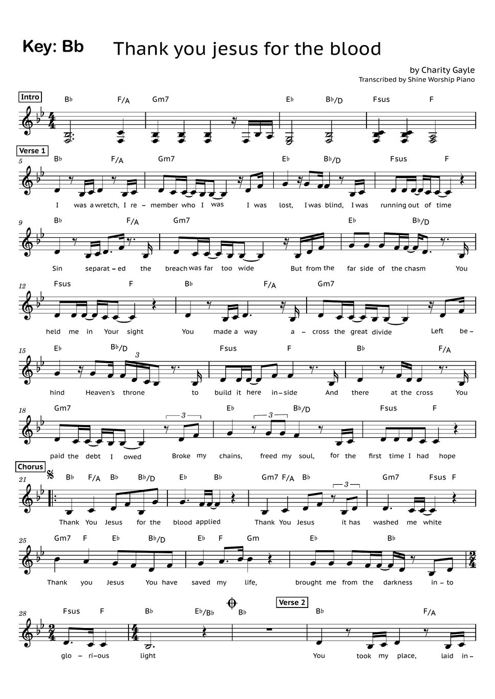Thank You Jesus For The Blood Sheet Music PDF (Charity Gayle