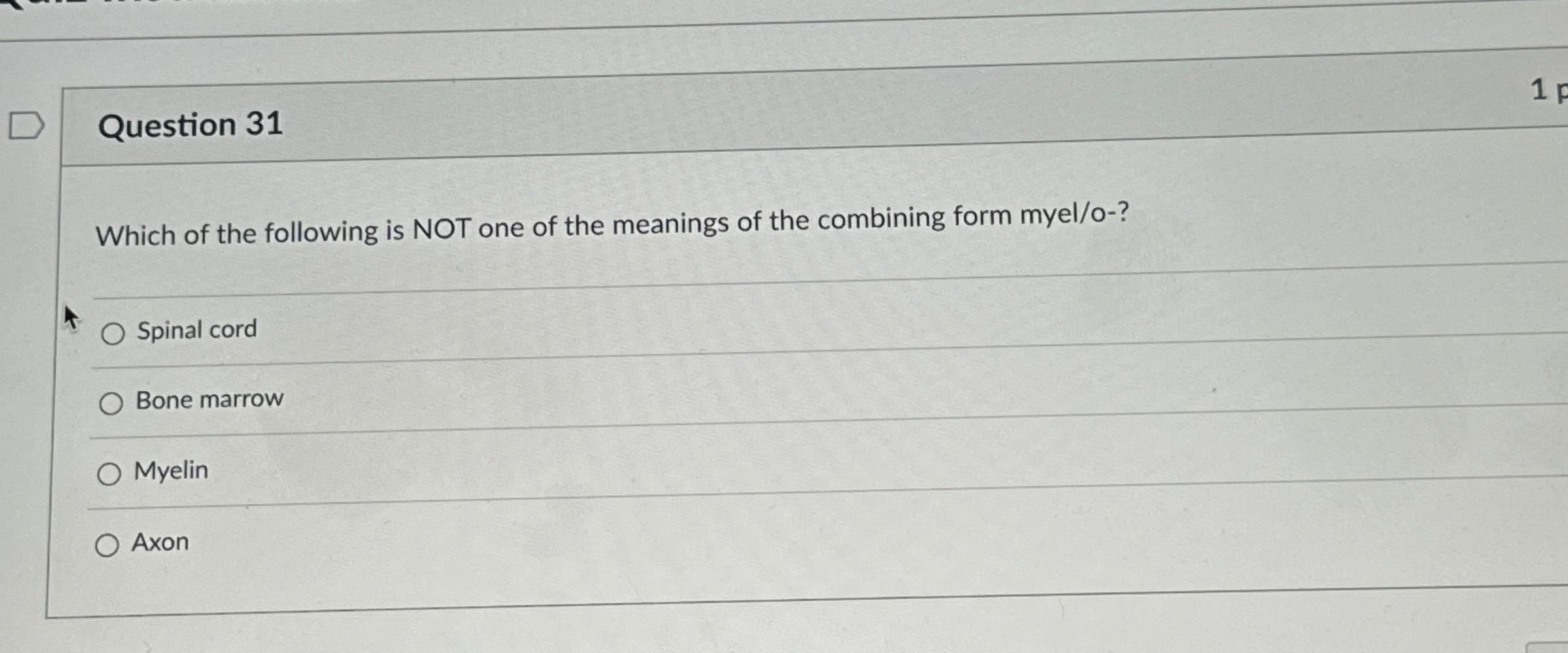 Spinal cord', indicating its relevance in anatomy. The combining form 'myel/o' means bone marrow, which is vital in medical. The combining form myel/o is defined as: The combining form myel/o means 'bone marrow; Study with quizlet and memorize flashcards containing terms like the combining form.