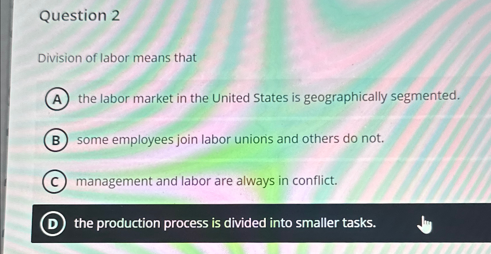 Solved Question 2Division of labor means thatthe labor