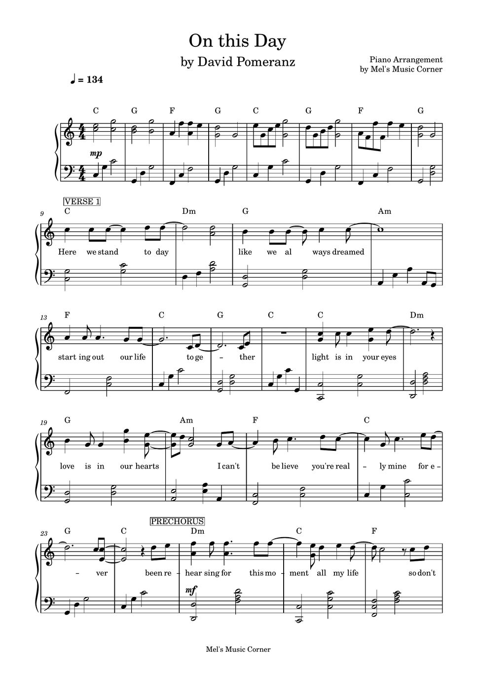 David Pomeranz On This Day (piano sheet music) Bản nhạc by Mel's