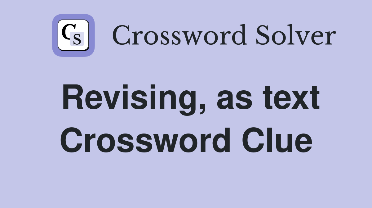 Revising, as text Crossword Clue Answers Crossword Solver