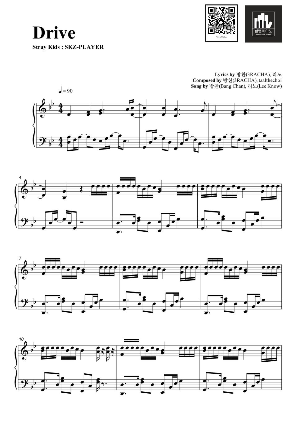 Bang Chan(방찬), Lee Know(리노) Drive Sheet by HANPPYEOMPIANO