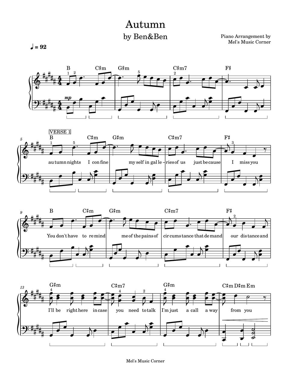 Ben&Ben Autumn (piano sheet music) Sheets by Mel's Music Corner