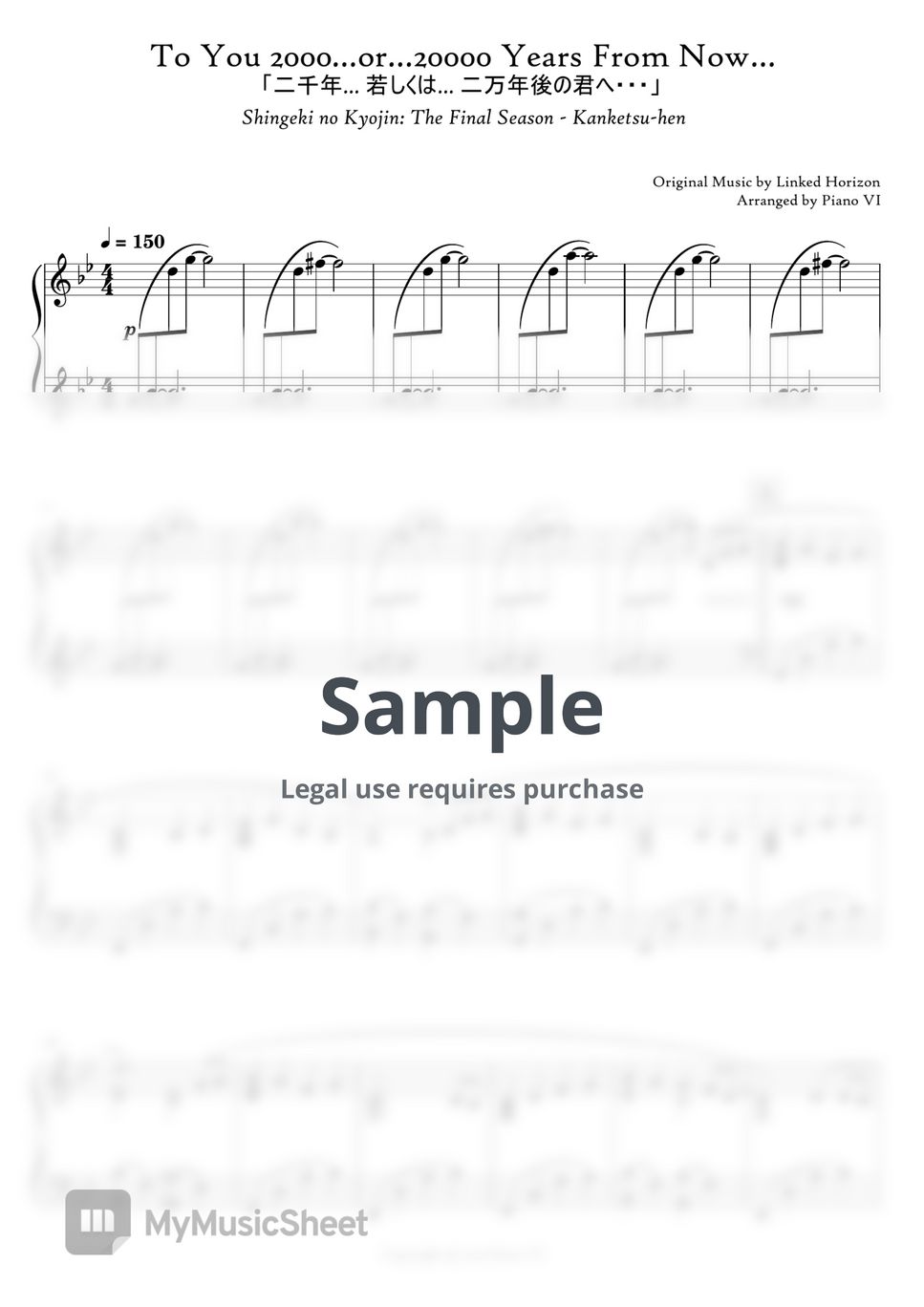 To You 2000 Or 20000 Years From Now Piano Sheet - Print test to you, 2000 years. Sheet music by music lah arranged for piano. Piano solo in g minor. Original music by linked horizon piano arrangement by animenz