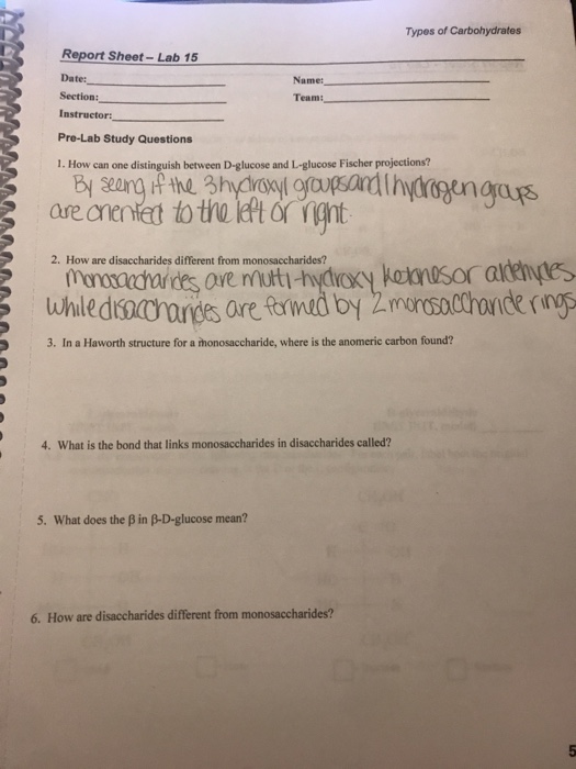Solved Types of Carbohydrates Report SheetLab 15 Date,